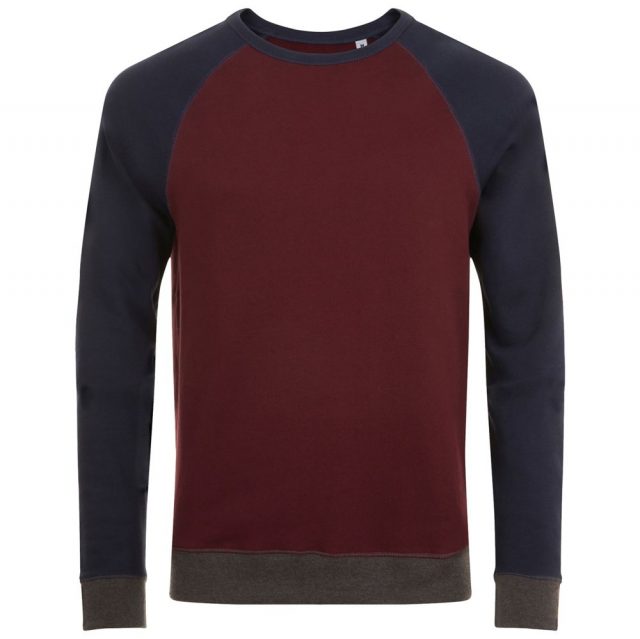 Трехцветный свитшот в стиле 80-х с рукавом реглан. Лейбл производителя в боковом шве изнутри, в шве горловины — только бирка с размером, что позволяет вам нанести свой логотип.
