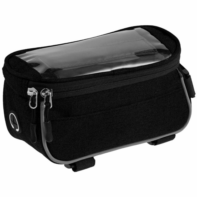 В основное отделение поместятся самые необходимые на велопрогулке вещи: кошелек, ключи, салфетки, снеки. На боковой стенке есть прорезиненное отверстие для наушников, а окантовка выполнена из светоотражающего материала.