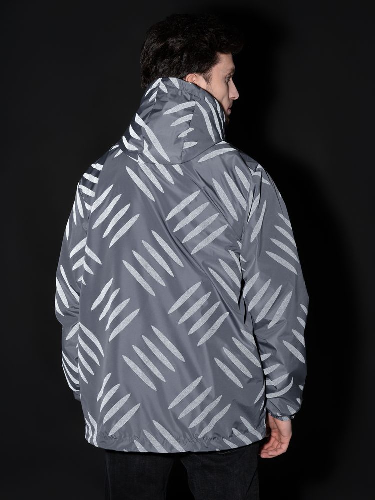 У ветровки с таким паттерном две большие целевые аудитории. Одна — компании, работающие в тяжелой промышленности, другая — все остальные. Согласитесь, довольно мало тех, кто не считает свою работу тяжелой!Ветровка с капюшоном из ткани с водоотталкивающей пропиткой и светоотражающим рисунком.