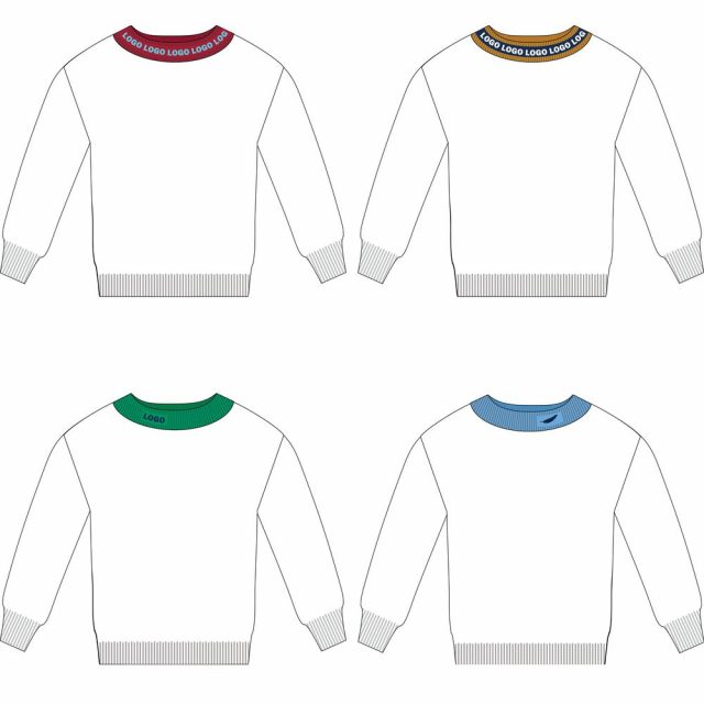 Вязаная горловина с вывязанным логотипом или просто в фирменной цветовой гамме.