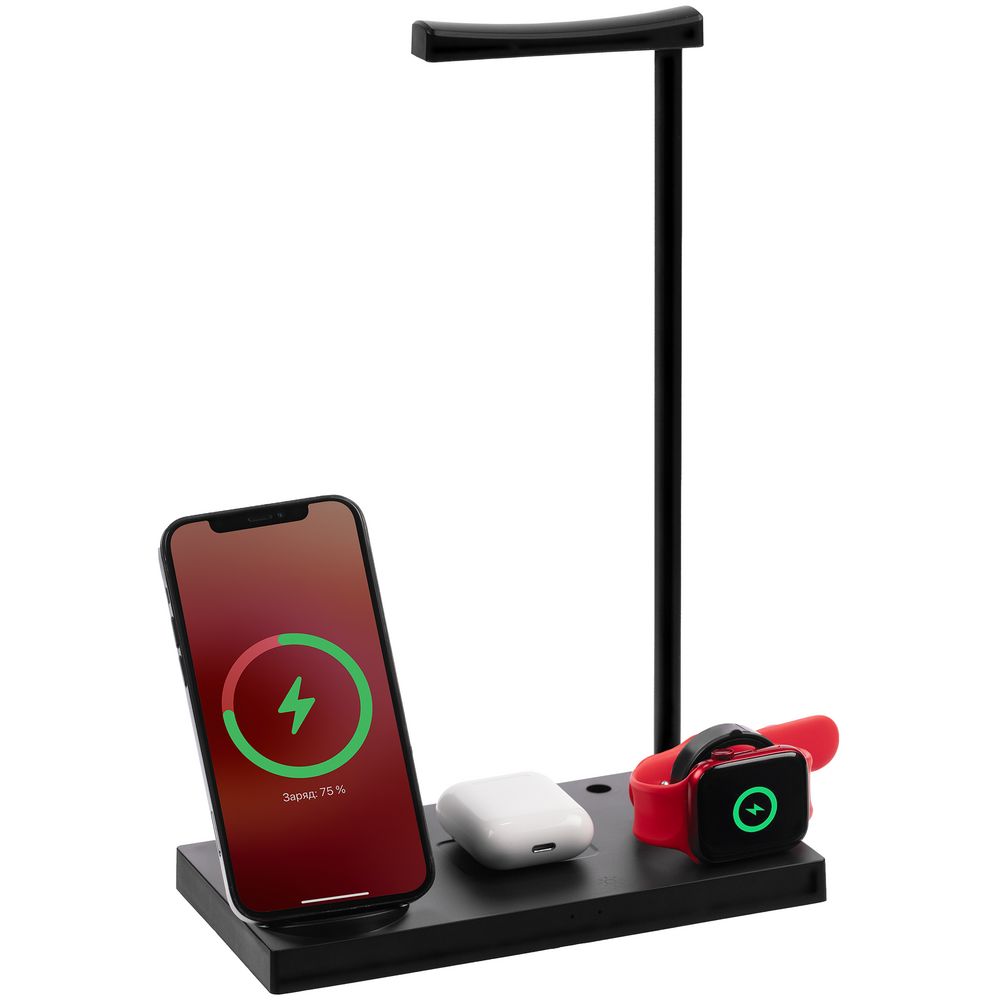 Зарядная станция совместима со всеми смартфонами и наушниками, которые поддерживают технологию беспроводной зарядки Qi. Зарядка начнется автоматически при размещении устройств на индукционной площадке. Также предусмотрено место для зарядки всех типов умных часов на специальной площадке.