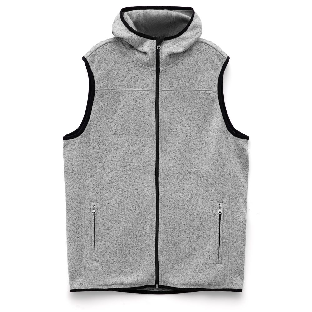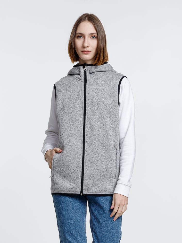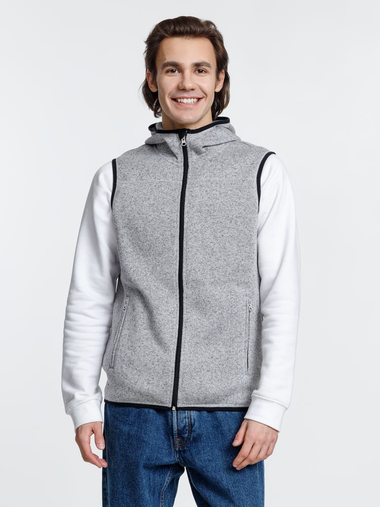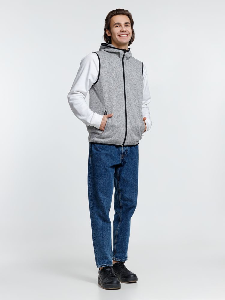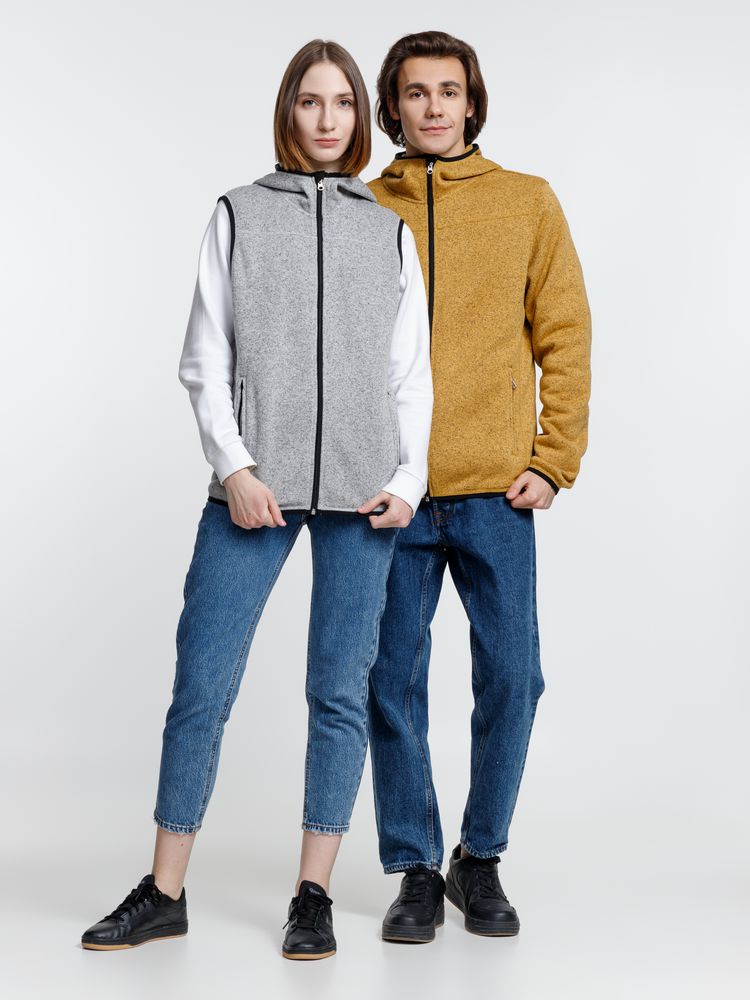 Вязаный жилет унисекс на молнии с капюшоном.