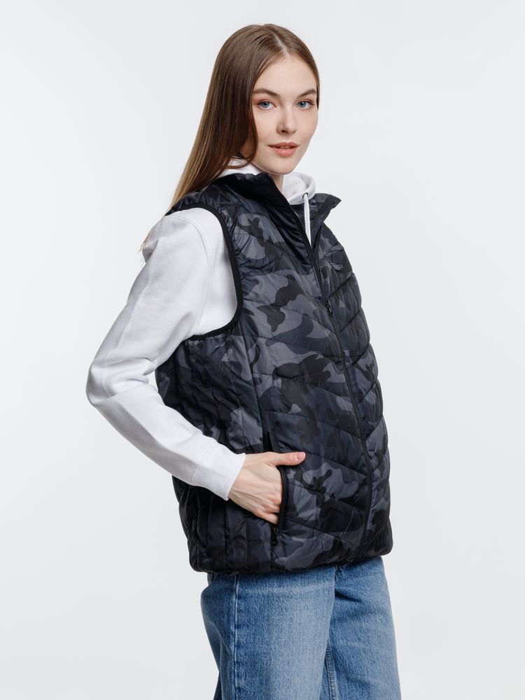 - Жилет на молнии с воротником-стойкой и 2 наружными карманами