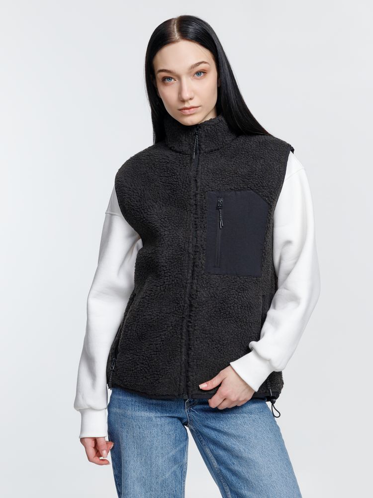 Жилет унисекс из фактурной искусственной шерпы с гладкой отделкой из таслана.