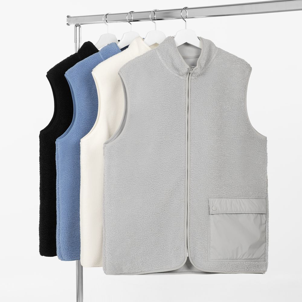 Жилет на молнии из современного двухслойного материала — модный искусственный мех снаружи и уютный флис внутри. Накладной карман из гладкого нейлона создает заметный визуальный контраст и делает жилет Oblako по-настоящему стильным предметом гардероба.