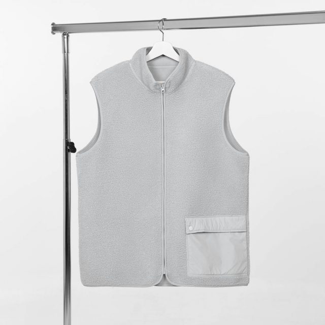 Жилет на молнии из современного двухслойного материала — модный искусственный мех снаружи и уютный флис внутри. Накладной карман из гладкого нейлона создает заметный визуальный контраст и делает жилет Oblako по-настоящему стильным предметом гардероба.