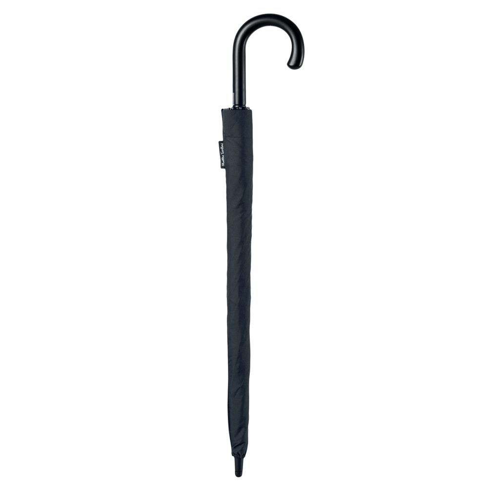 Тефлоновое покрытие ткани отталкивает воду и грязь, обеспечивая долговечность и легкий уход. Усиленная ветрозащитная конструкция выдерживает даже сильные порывы ветра, а автоматическое открывание делает использование максимально удобным. Эргономичная ручка из матового пластика с изящным дизайном и противоскользящим верхом добавляет комфорта. Зонт упакован в стильный чехол из той же ткани — это не только практично, но и элегантно.