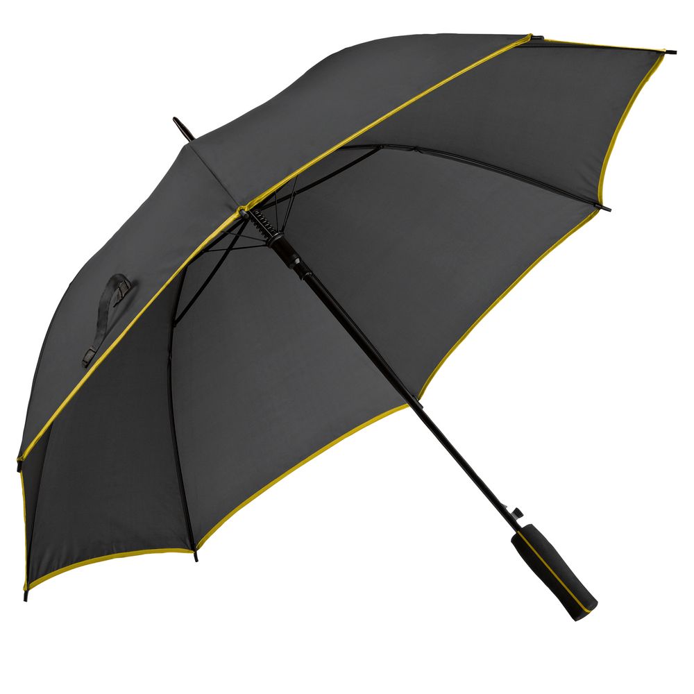 Зонт-трость с мягкой ручкой и цветными деталями на куполе и ручке.