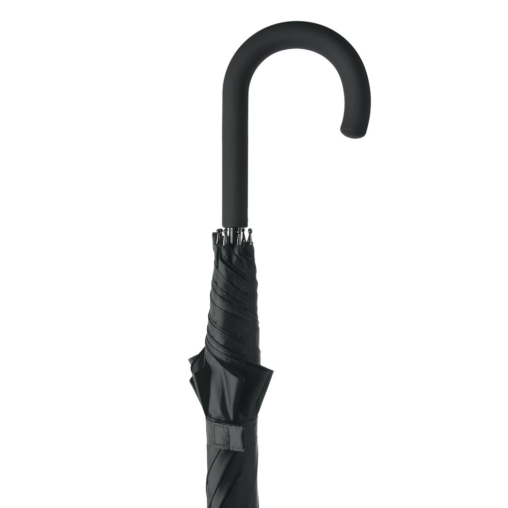 Зонт снабжен системой защиты от ветра. Если при экстремальных порывах ветра купол выгибается, то механизм пружинит, не давая спицам погнуться или сломаться.